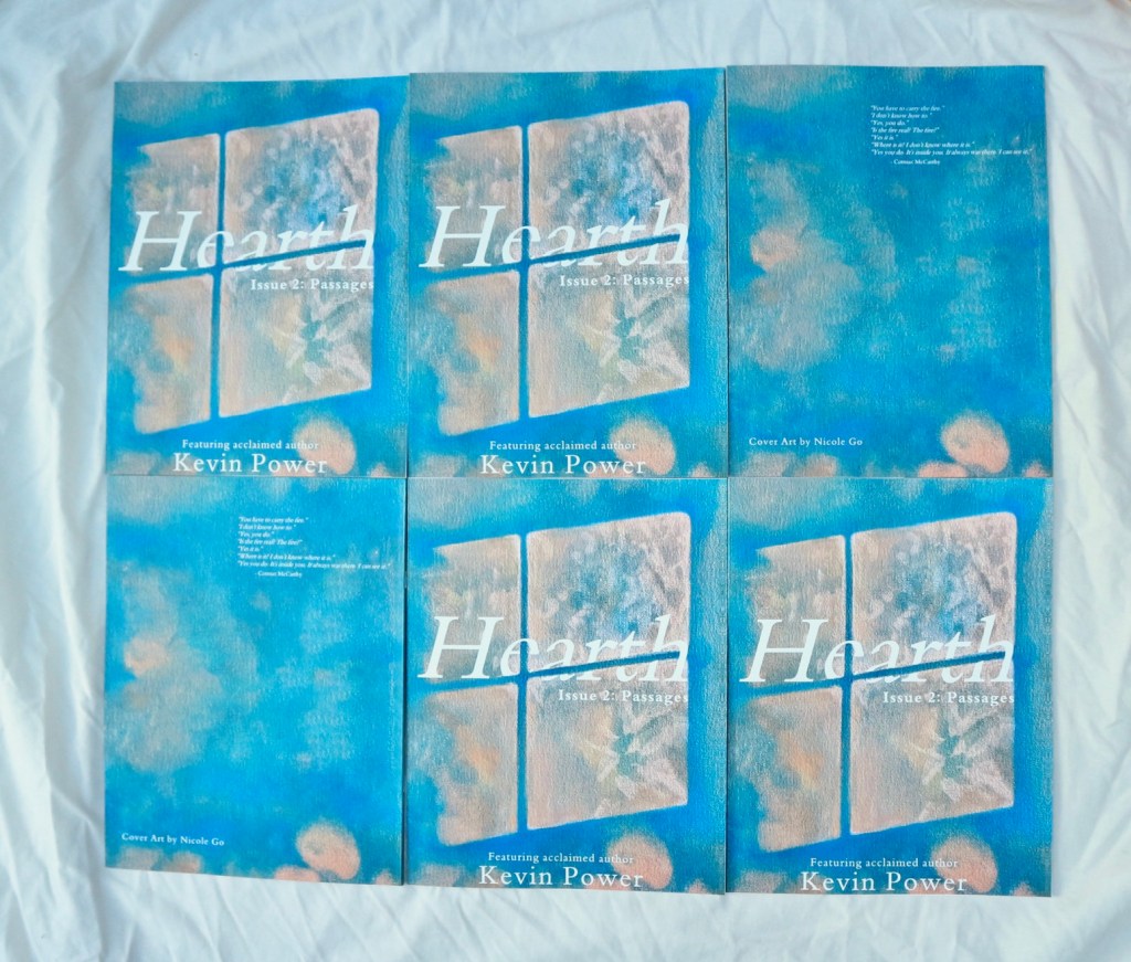 We suppose it was fitting that the theme was Passages. However, as you’ll see, Passages are not found solely in travelling. Whether it be the passage from life to death, from childhood to adulthood, through cultures or the way light travels, every potential meaning of Passages was captured by our amazing contributing writers and artists. We want to give a big thank you to our dear friend Nicole Go who did an incredible job with the cover art for this issue—we cannot thank her enough. That goes for all of our artists and photographers included in this issue. Though we often focus on the literary aspects of our magazine, there is no Hearth without the artists. With every issue, we are more and more astounded by the quality of work that people share with us. We highly encourage you to follow these artists on their social media accounts and support their work as one can only guess what they will do next.