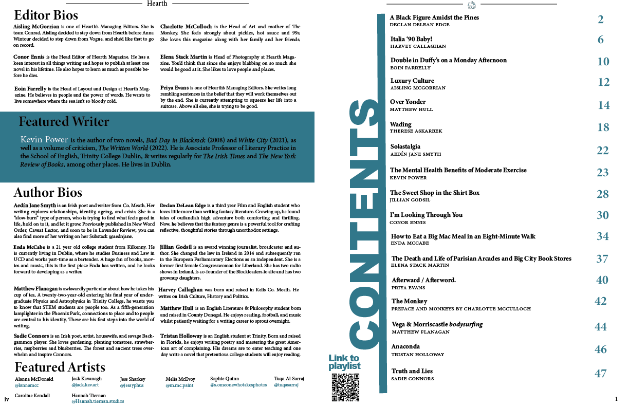 There will be a longer gap before Issue 3’s release but you can still keep up with Hearth by checking out our Substack or following the Instagram.